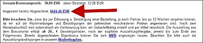 Wie oben schon gesagt – inzwischen habe ich mir schon 6644,46 Euro zurückgeholt – für Einkäufe, die ich sowie so getätigt hätte.